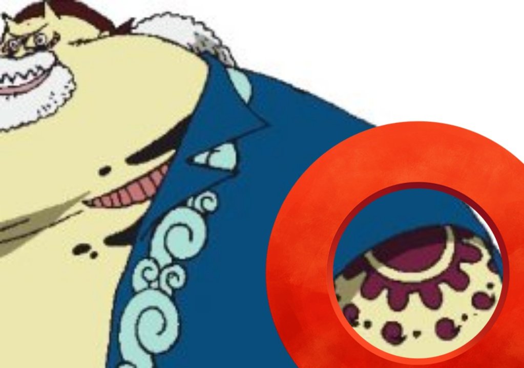 En allant au chapitre 56 on voit 3 éléments , le champignon qui fait référence au Hito Hito no mi et le symbole sur le taureau qui symbolise le symbole du soleil