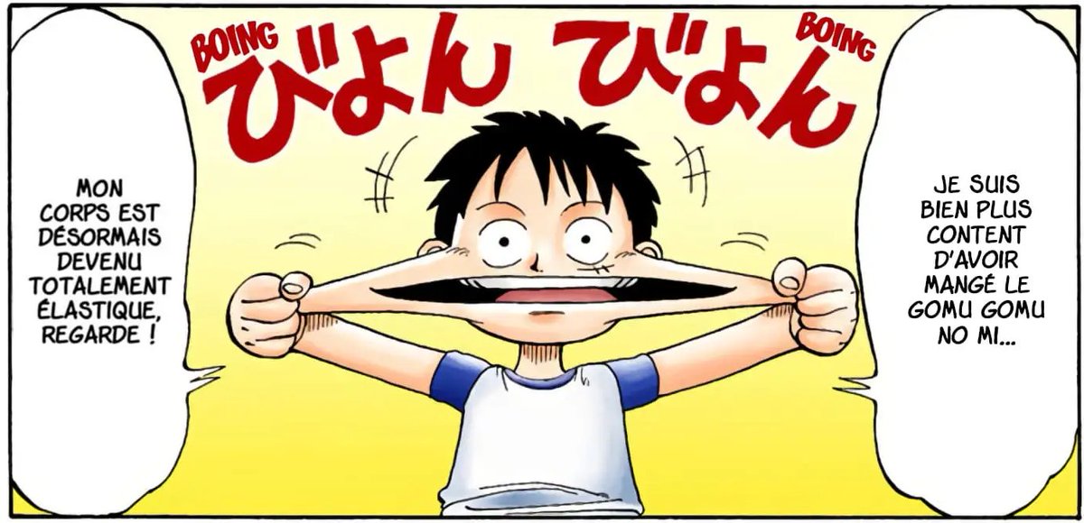 D'ailleurs dans le chapitre 1 Oda démarque un avant/après la consommation du FDD, car juste après la 1ere chose qu'on nous fera remarquer c'est que Luffy est inhabituellement content et Luffy dira que c'est depuis qu'il a mangé le Gomu Gomu no mi !