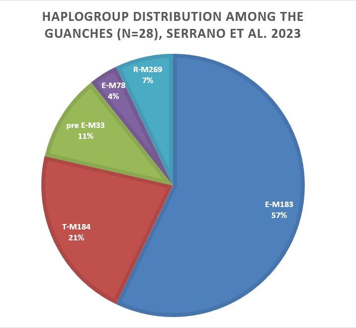 In addition to E-M183 which made up 57% of the samples, other haplogroups have been found; T (21%), E-M33* (11%), R1b-M269 (7%) and E-M78 (3%)