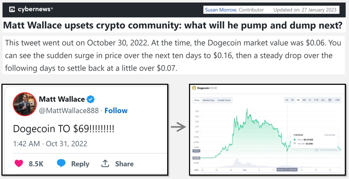 In the past, Wallace knowingly inflated the value of the DOGE coin, so he could buy it cheap an make profit.