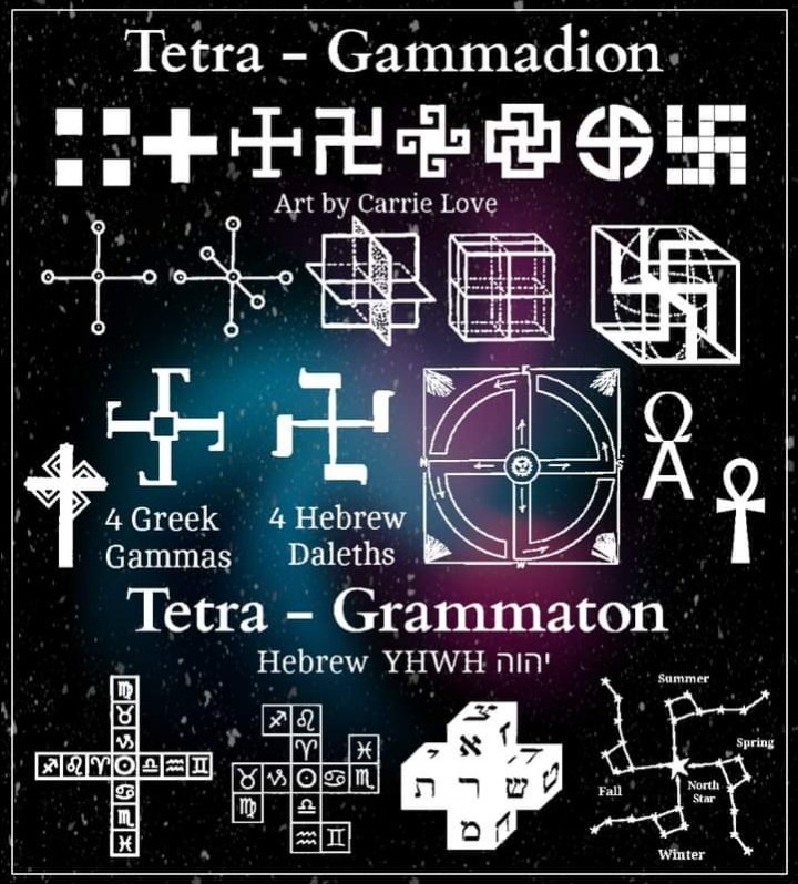 The Swastika can be produced by Four Greek Gammas or Four Hebrew Daleths (or Yods). This is known as Tetragammadion.