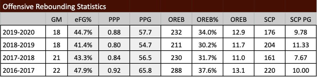 Looking at the 2019-20 season, I thought we had accomplished many of our offensive rebounding goals: