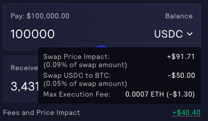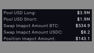 Example: There are $3.9m wBTC and $1.9m USDC in the BTC-USDC pool. The swap impact BTC pool contains $535.