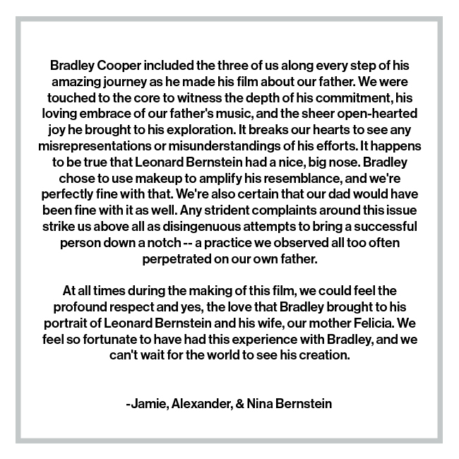 Bradley Cooper included the three of us along every step of his amazing journey as he made his film about our father.