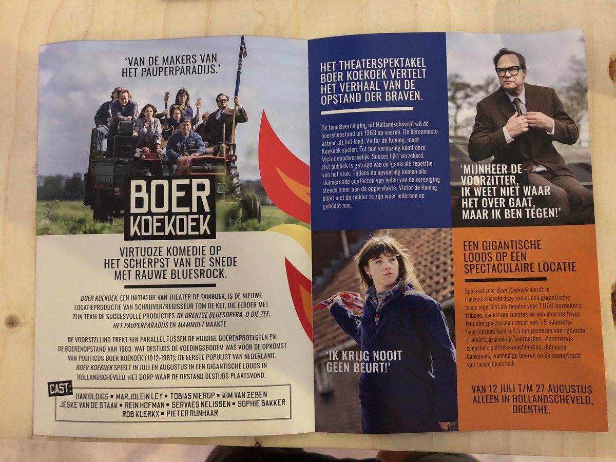 Folder. De avond gaat zoals ik dacht over de parallellen tussen de boerenopstand toen - Boer Koekoek - en die nu.