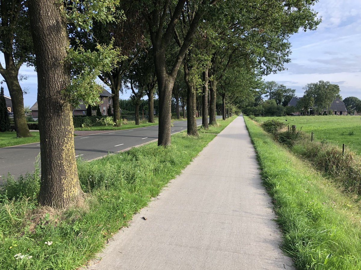 Er staan hier borden met een soort reclame voor boerenbedrijven, ik denk uit de regio. Er is een ijsboerderij met de naam ‘Drentse Koe’ en ook is er een bord van Shiitake Kwekerij Masselink.