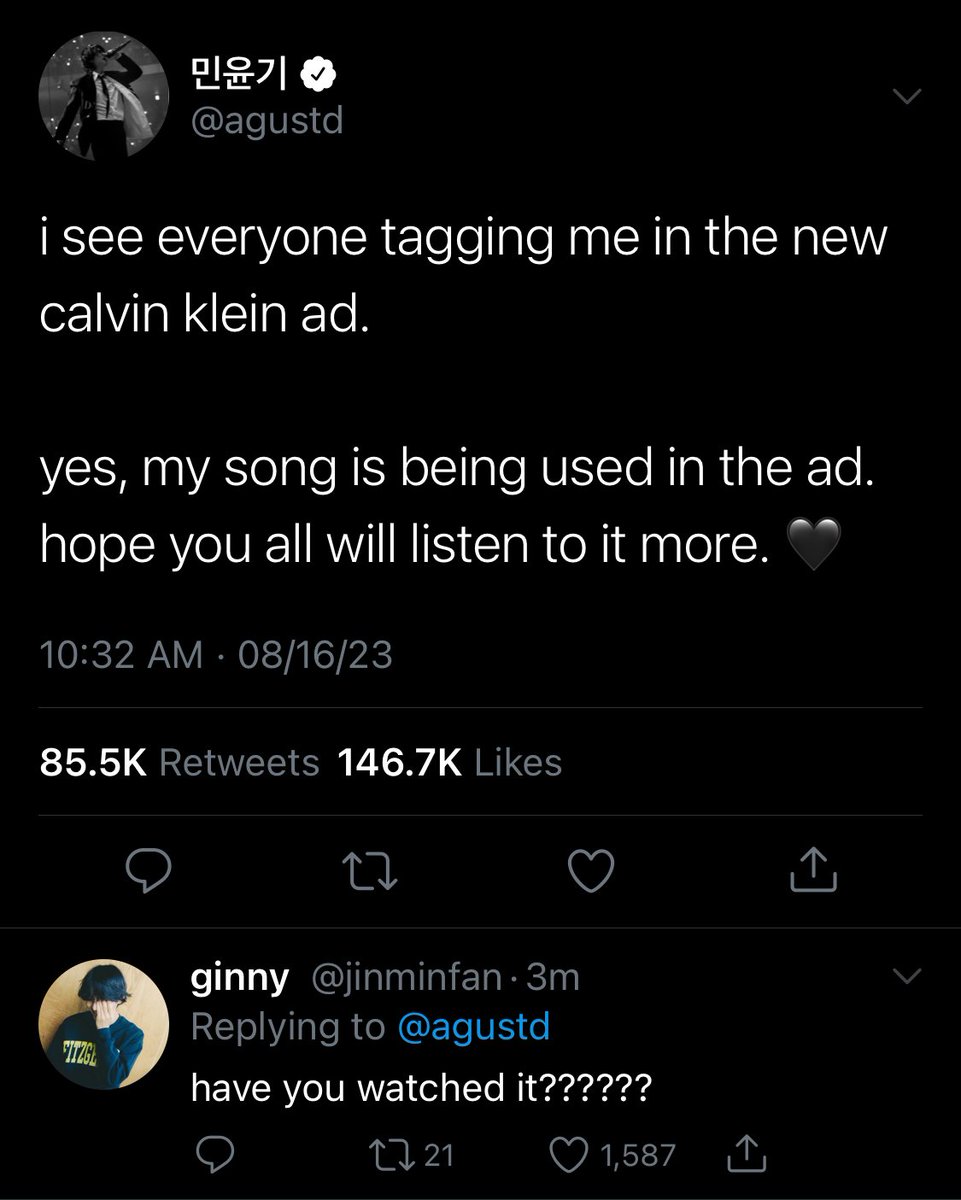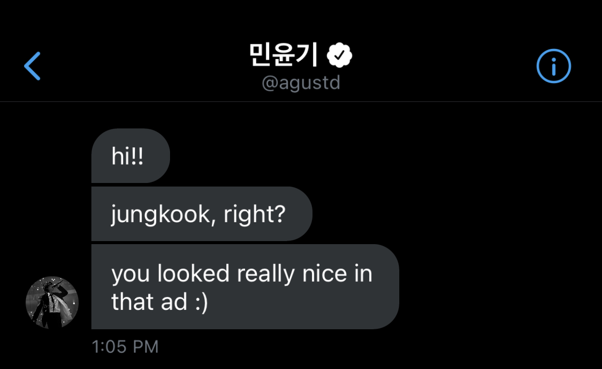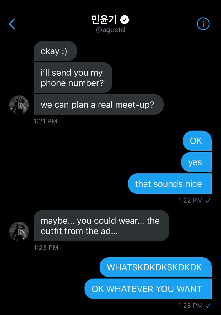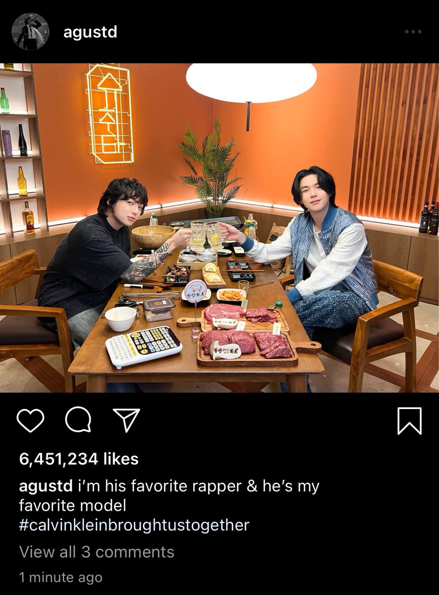 yoongi’s never seen the model before, but they end up being big fans of one another.