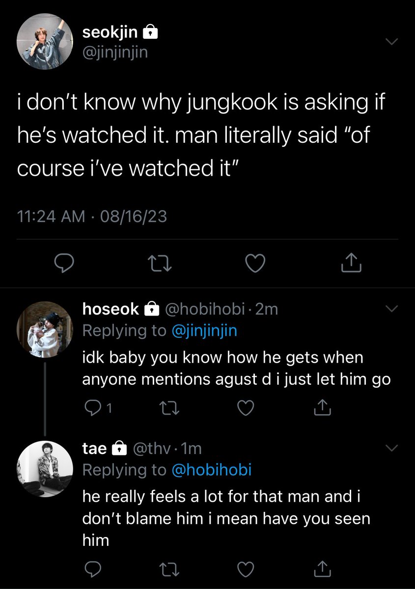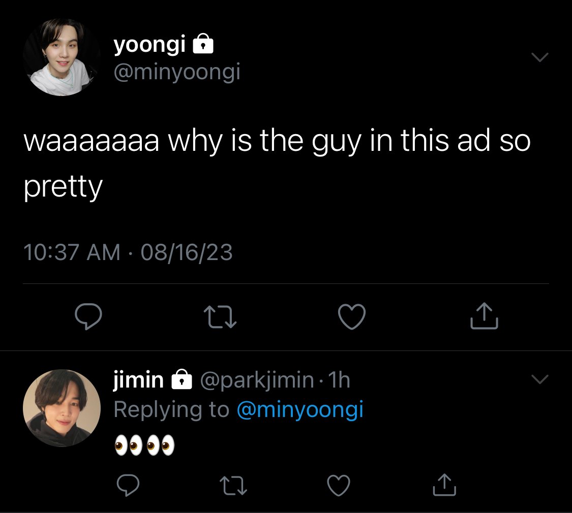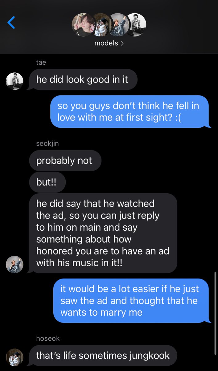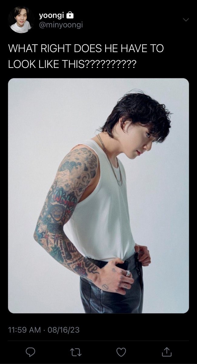 yoongi’s never seen the model before, but they end up being big fans of one another.