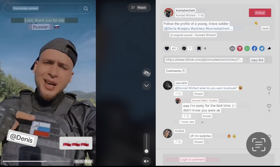@ServiceSsu @DefenceU 8/ Aber wer ist dieser polnische TikTok Account namens Konrad Wichert? Werfen wir mal einen Blick drauf! Auf seinem TikTok Account finden wir neben dem Video auch das originale Narrativ. Und jetzt kommen wir auf das Problem das der @ORF gerade hat? Was wird damit gemeint?