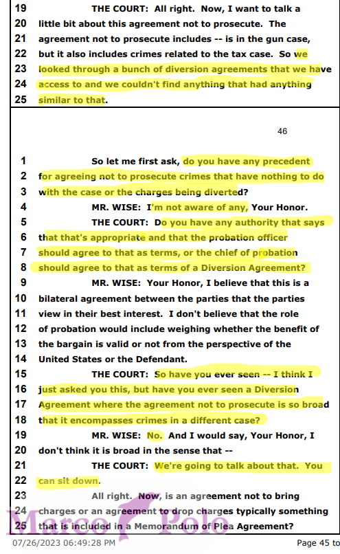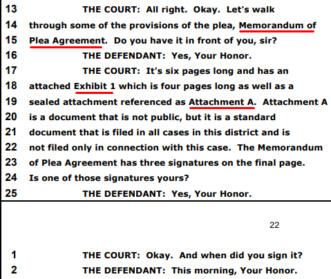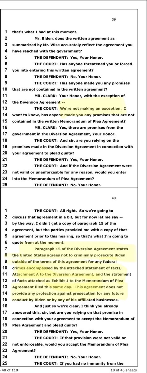 Before the judge was a memorandum of the plea agreement, an exhibit (statement of facts) a sealed attachment, AND a diversion agreement for the gun… https://t.co/KdSS94acqQtwitter.com/i/web/status/1…