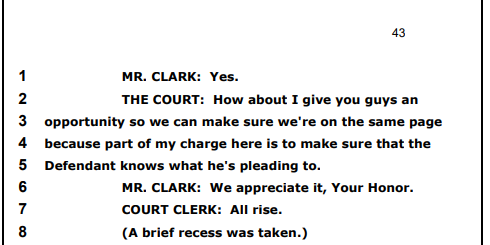 Yeah, this is where/when things broke down this morning. After these exchanges the court recessed so the sides could talk it over.