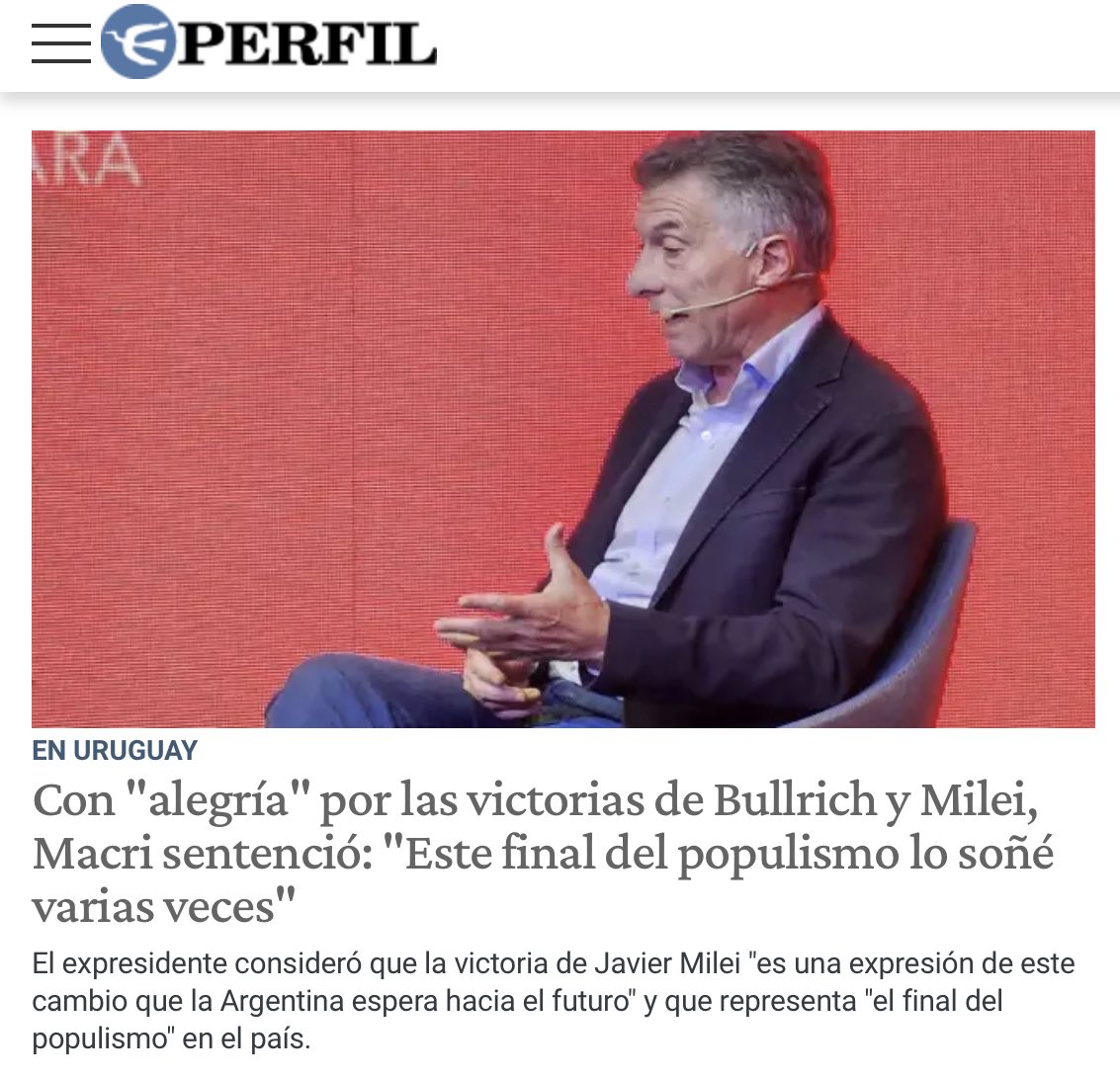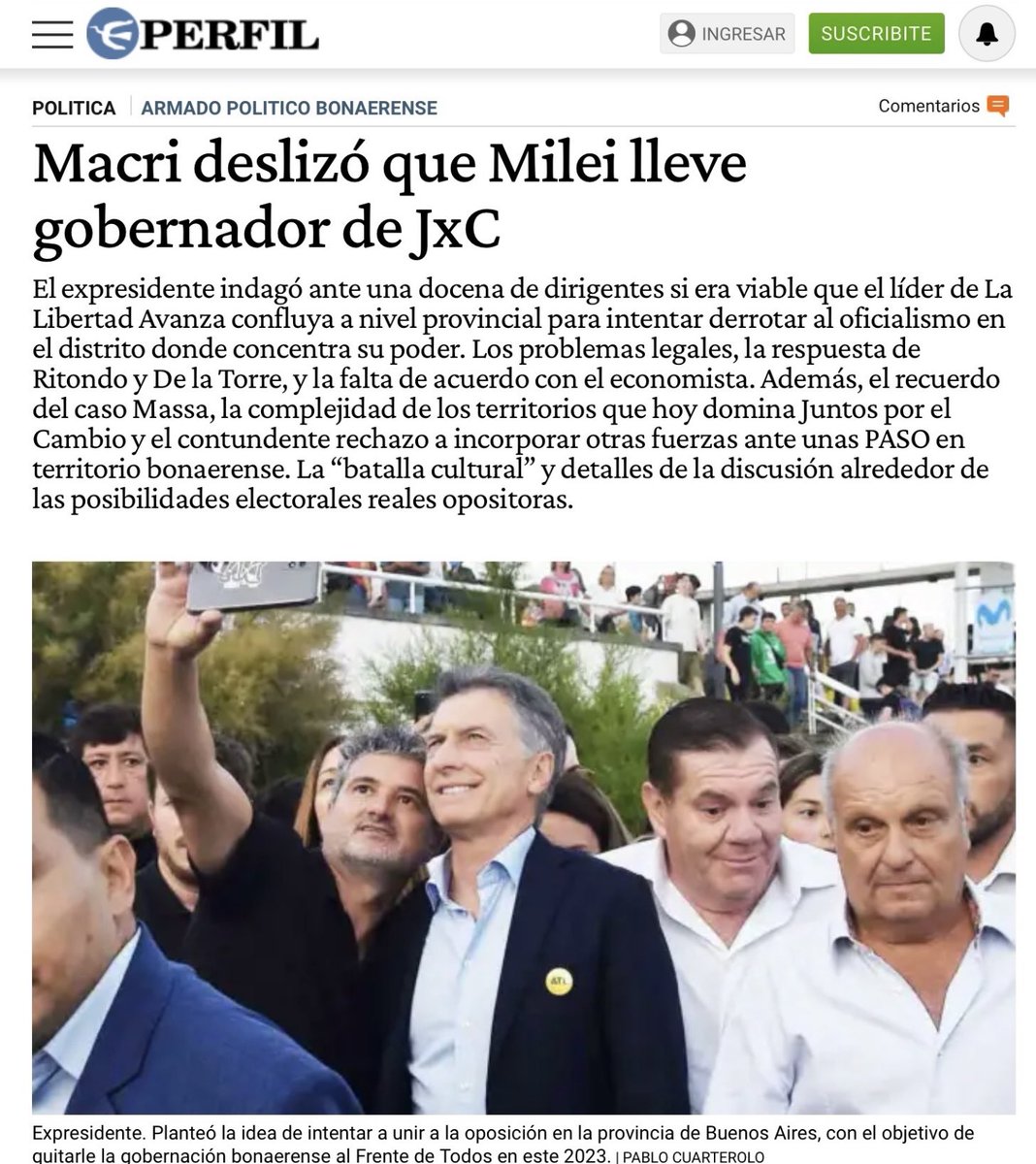 ¿Que quiere Macri? Garantizarse que el triunfo sea el de alguno de los dos. Y creo que, después del triunfo en las PASO, prefiere a Milei porque representa sus verdaderas ideas, las que no pudo llevar a cabo en JxC por culpa de las “palomas” y los radicales.