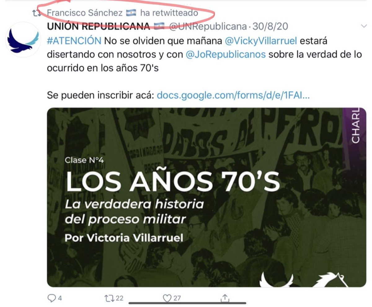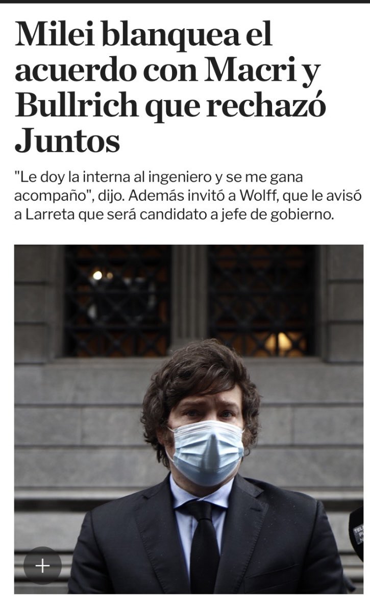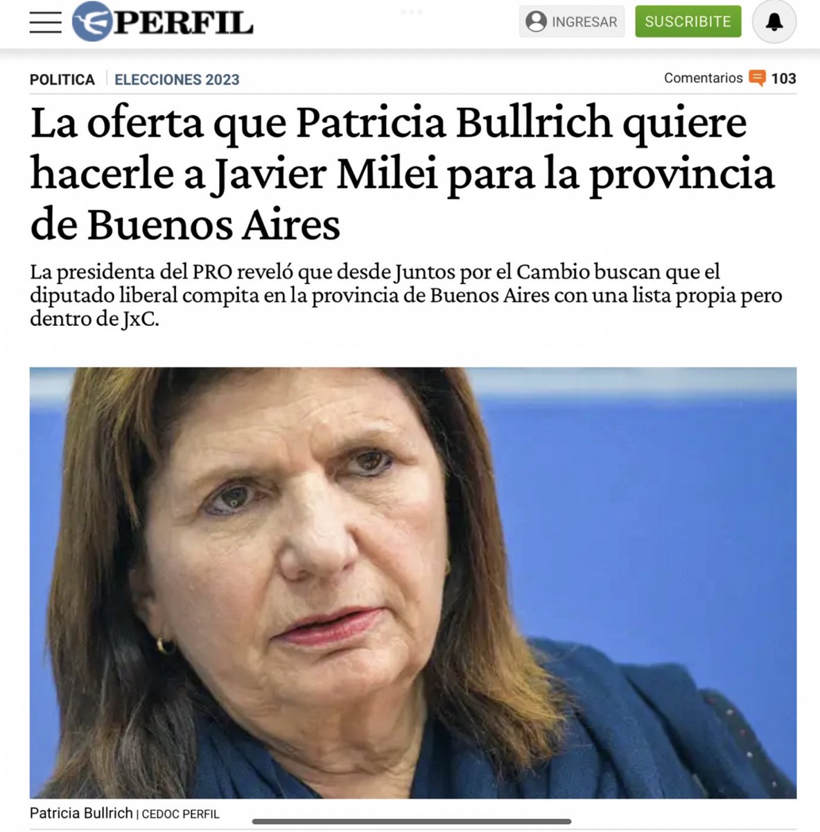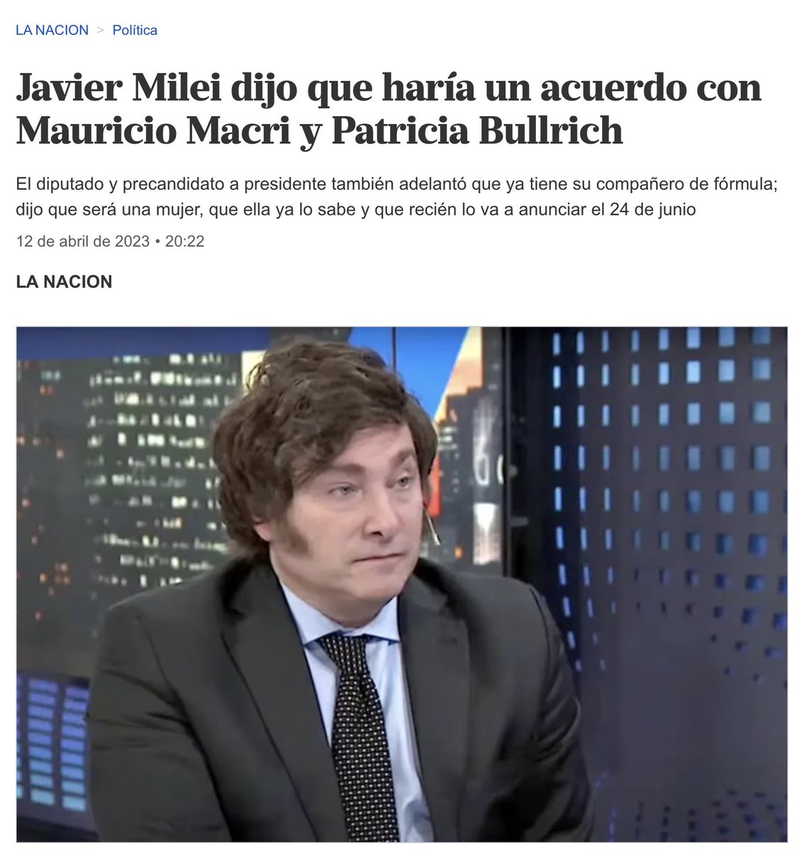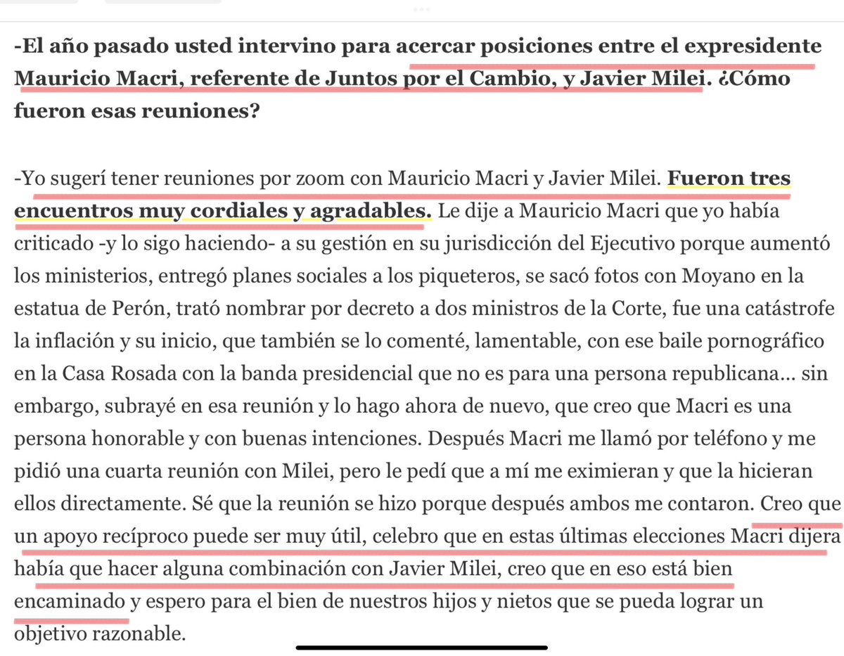 Que, como sabemos, manifestó su apoyo a Milei el domingo.