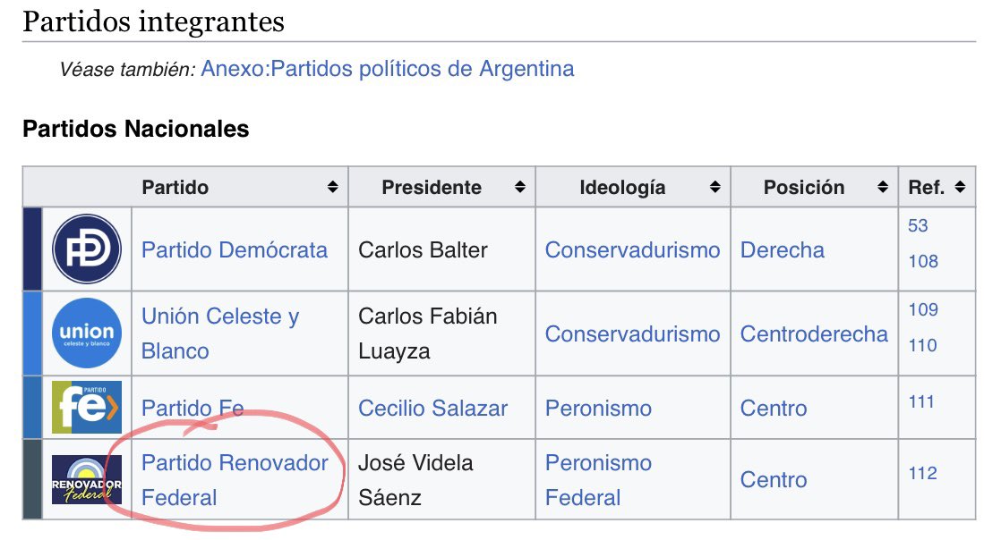 Uno de ellos es el Partido Renovador Federal, de ideología peronista.