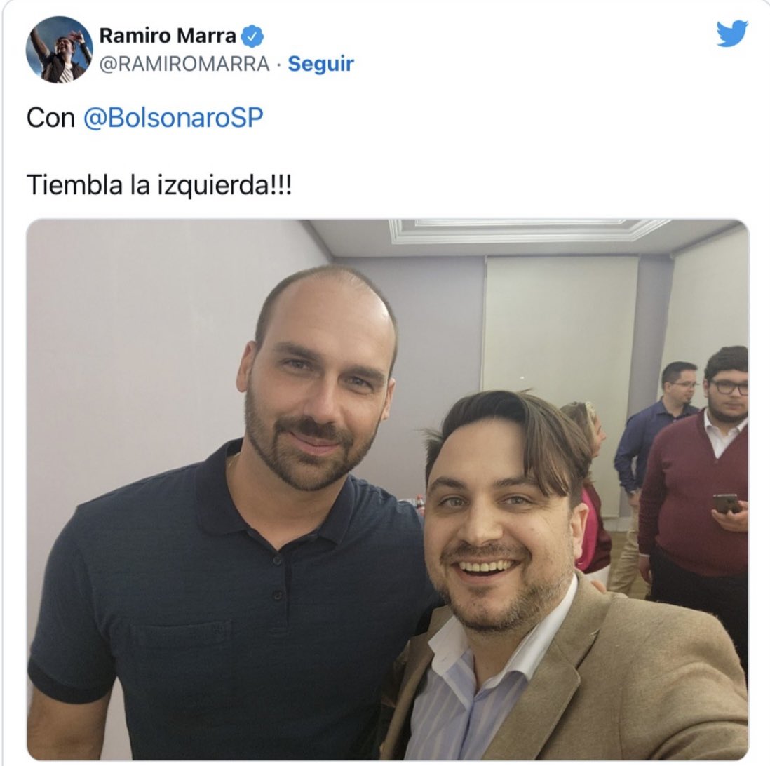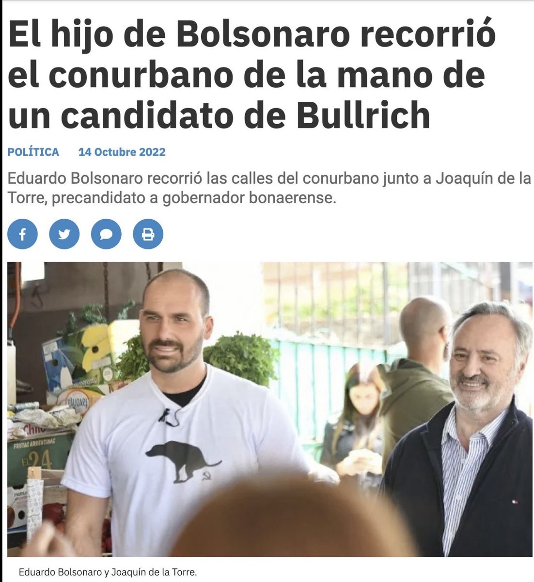 De la Torre participó de reuniones y recorridas con el hijo de Bolsonaro, un diputado que apoyó a Milei, y en las que participaron también Ramiro Marra y Carolina Píparo, los candidatos de Milei en CABA y PBA.
