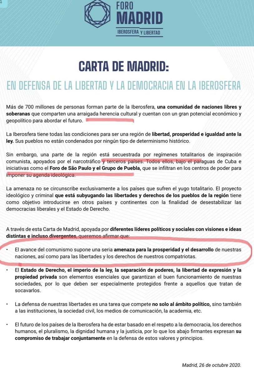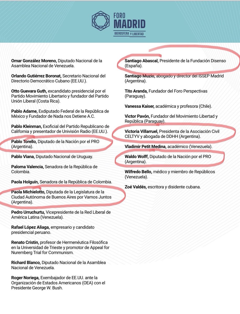 Diputados de Macri como Waldo Wolff y muchos otros, firmaron con la derecha española (Vox) de Santiago Abascal y la derecha brasileña de Bolsonaro un acuerdo ideológico “contra el comunismo”.