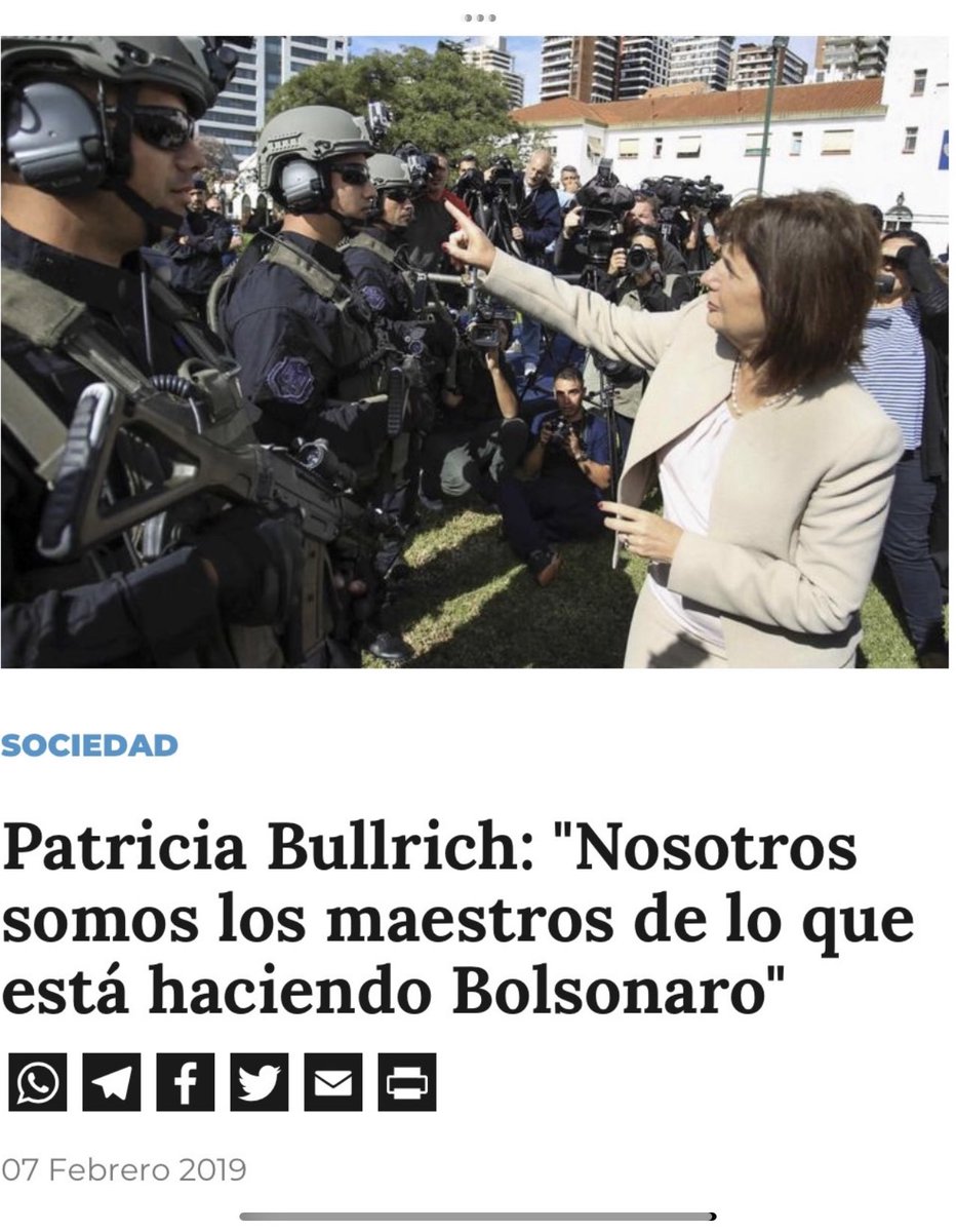 Patricia Bullrich llegó a afirmar que era una de las maestras de Bolsonaro y que sus ideas influyeron en las propuestas que ponía en marcha el ex presidente de Brasil.