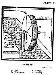 The Tympanum is a water wheel that not only produces mechanical energy as the rotation of it's shaft, but also lifts water to higher elevations. Dating back to the Roman empire, it was used to feed water from rivers and streams into aqueducts and cisterns. One of my favorites.