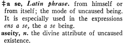 3/27 Aseity therefore is a negative property which denotes a being who is not caused by a cause to exist, it is wholly uncaused and is its own being, or having existence by virtue of its very own essence. (ens a se) That being said, we can address the real problem.