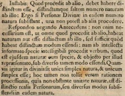 Thus, since the persons are really the same as the divine essence, but not the same notionally or in concept, they're not synonymous terms or concepts. Hence, the formal concepts of paternity and filiation oppose each other, which suffices for a real distinction.