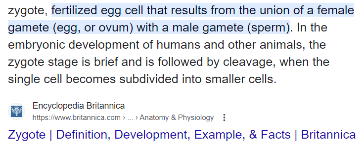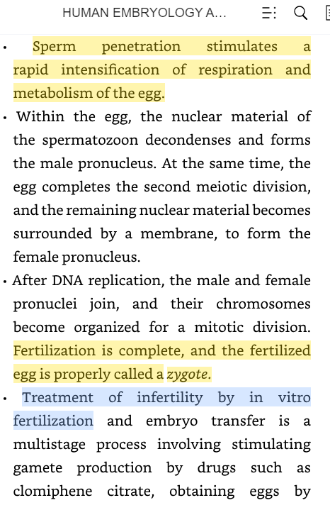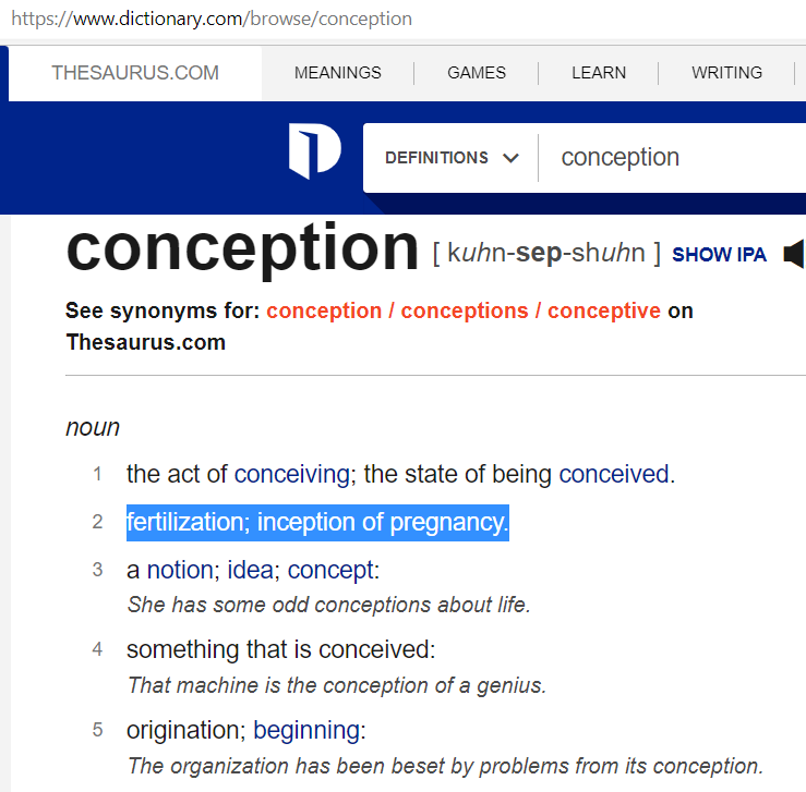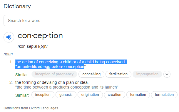 Conception = fertilization = "fusion of an egg and a sperm" = the start of a human being = zygote = the beginning of pregnancy = the beginning of a child 8/11