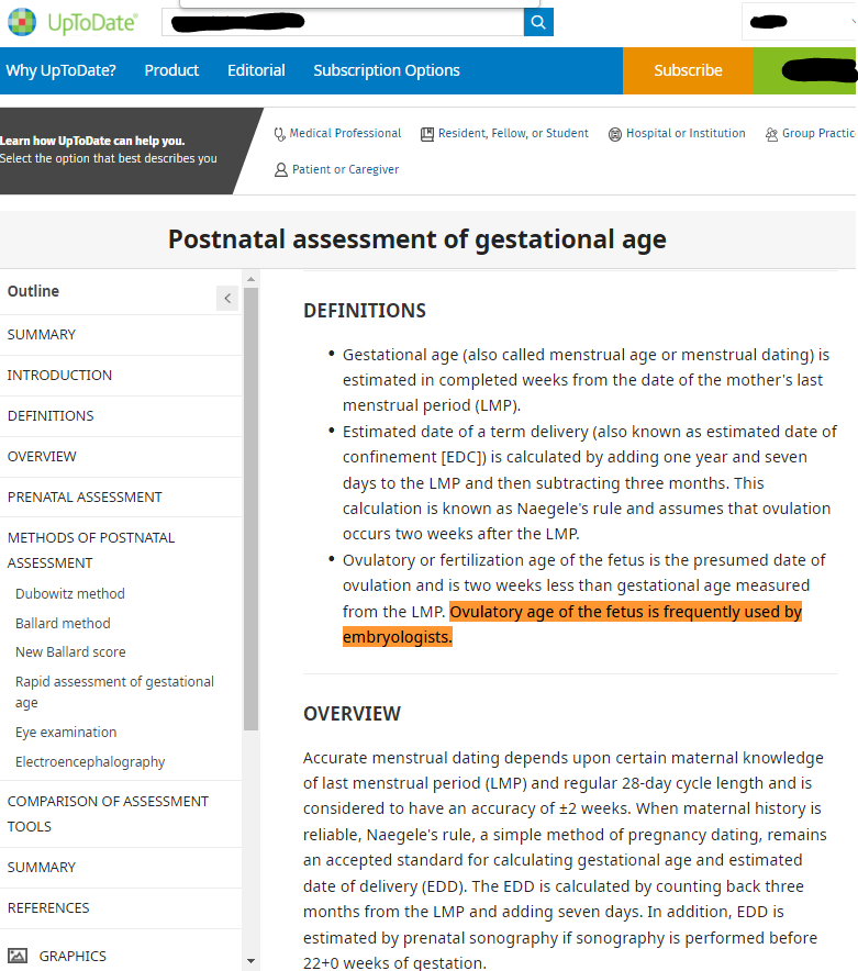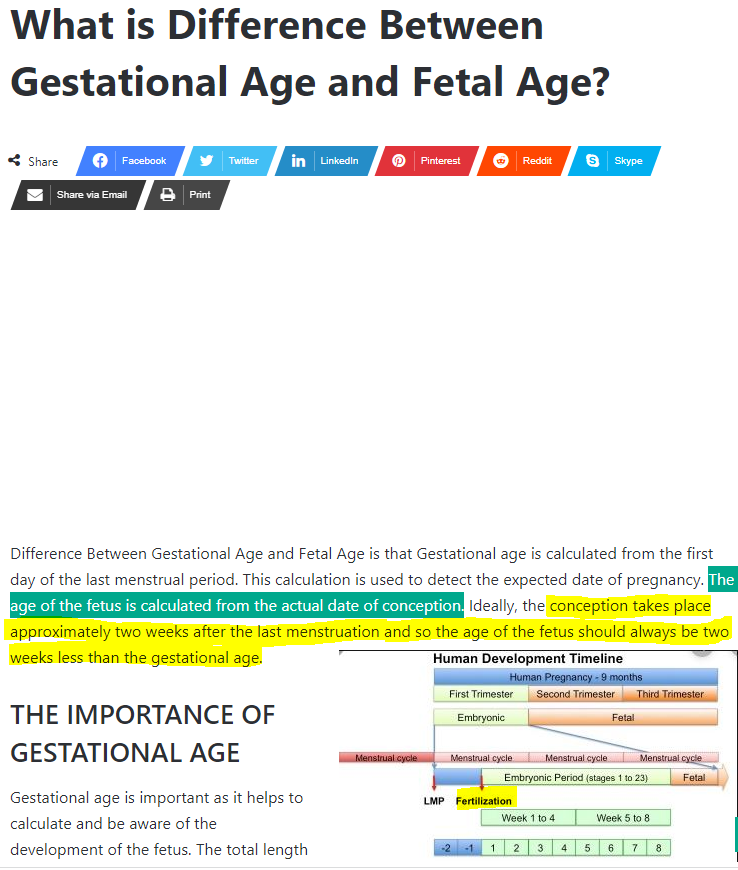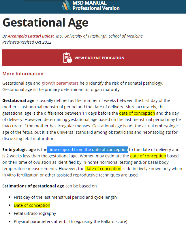 Apart from in vitro fertilization, conceptional age is impossible to know, but the standard estimate is 2 weeks after the first day of your last menstrual period (LMP). 4/11