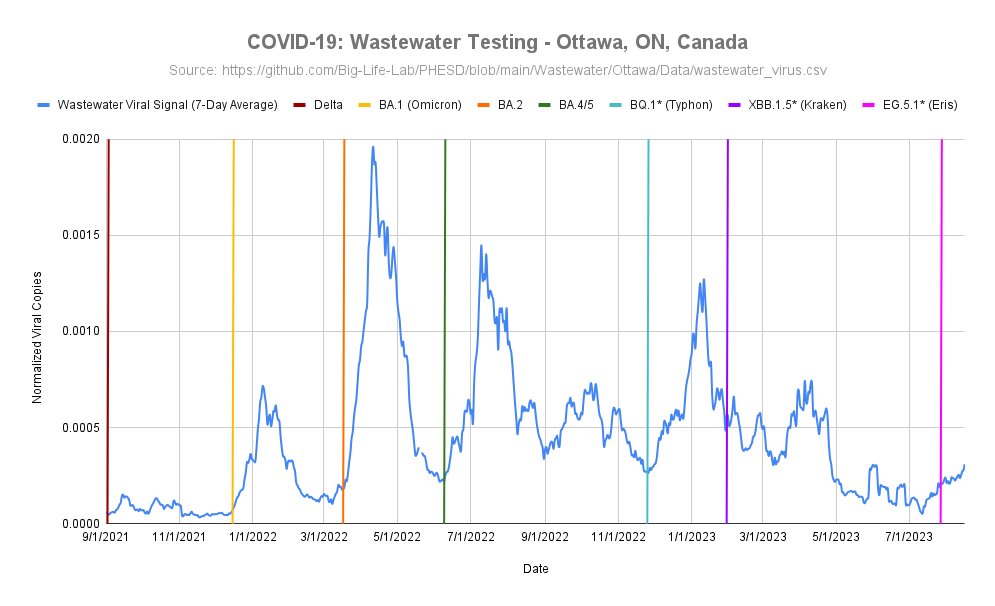 COVID wastewater levels in Ottawa, Ontario have been increasing over the past month. Weekly stats available at ( ). 5/ covid.gilchrist.ca/Ottawa.html