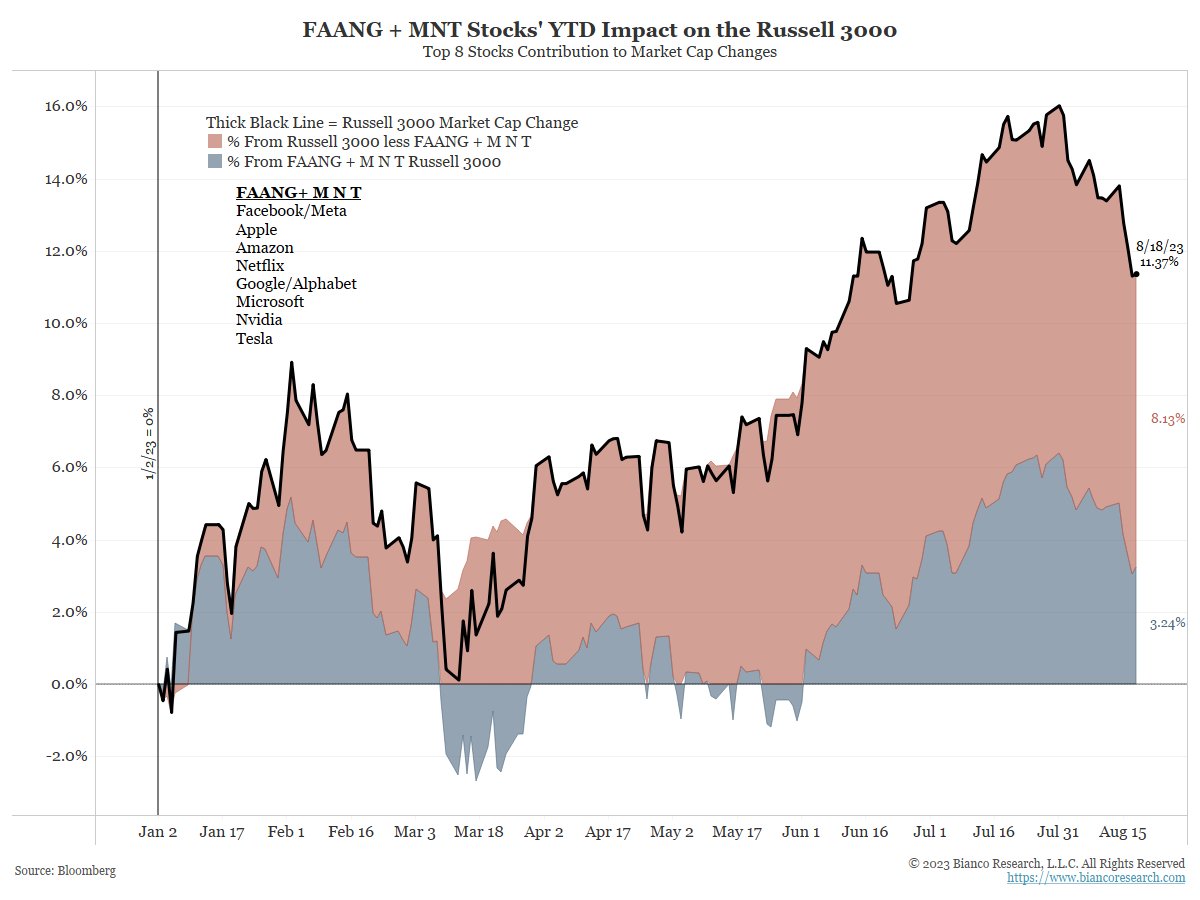 (The Russell 3000 mkt cap is $45T. $11T in FAANG+ MNT and $34T in the rest.)