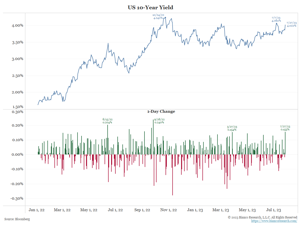 And what are banks doing because of the Bank Walk? They are squeezing everyone with tighter lending standards and much wider spreads (blue).