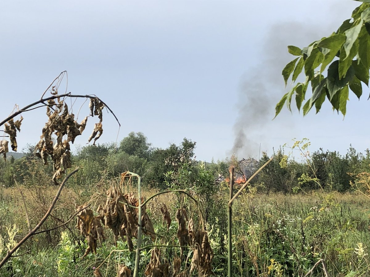 вогневими засобами висуваючи то рпгшників то пкм в сторону ворога. Працюємо і зміщуємось. Дикий бере на себе організацію тилу. Щоб нас не обійшли. В якийсь момент ворог накоплюєтся біля староі хати на чердаку якоі були віники сушеноі коноплі. Пробігая по траншеі коротко кричу: