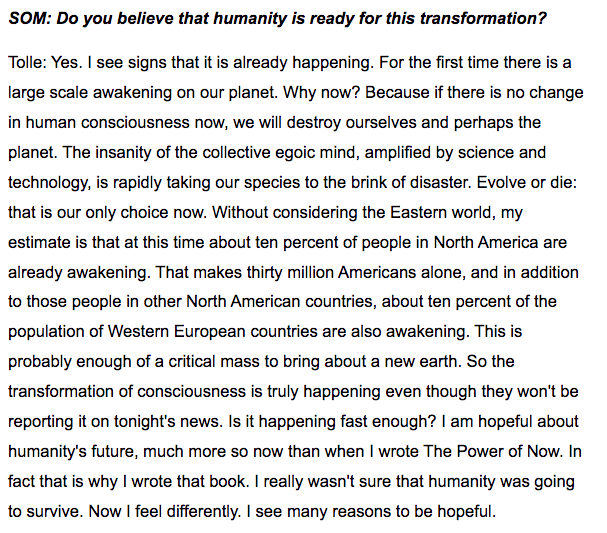 Here's Eckhart Tolle, who's been talking about enlightenment to a massive audience for decades: