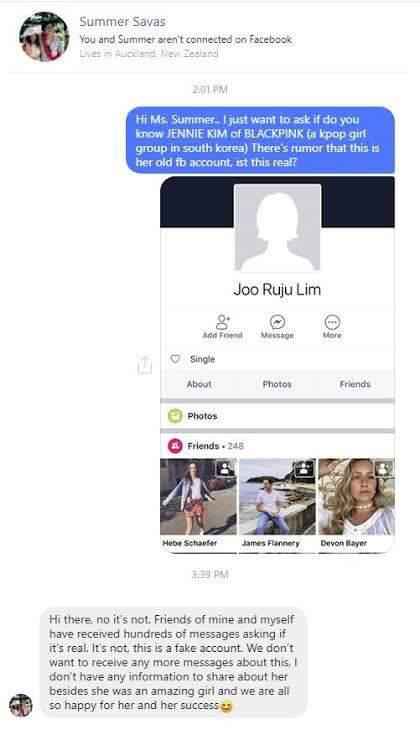 -Jennie's friends in New Zealand confirm the account is not Jennie's.
