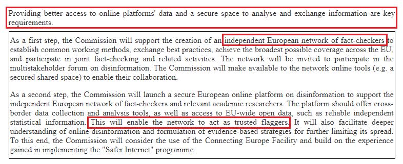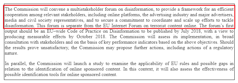 26/4/2018: EC document over de strijd tegen desinformatie. Men verwees naar een publicatie van het WEF uit 2014 en pleitte voor een sterkere aanwezigheid van overheden op social media.