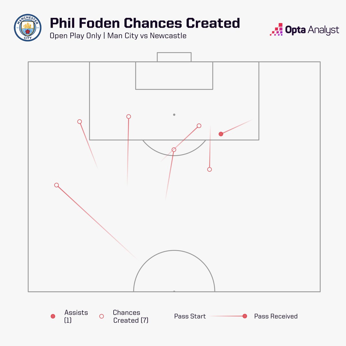 Phil Foden created seven chances (the most he’s ever had in PL) from open play.