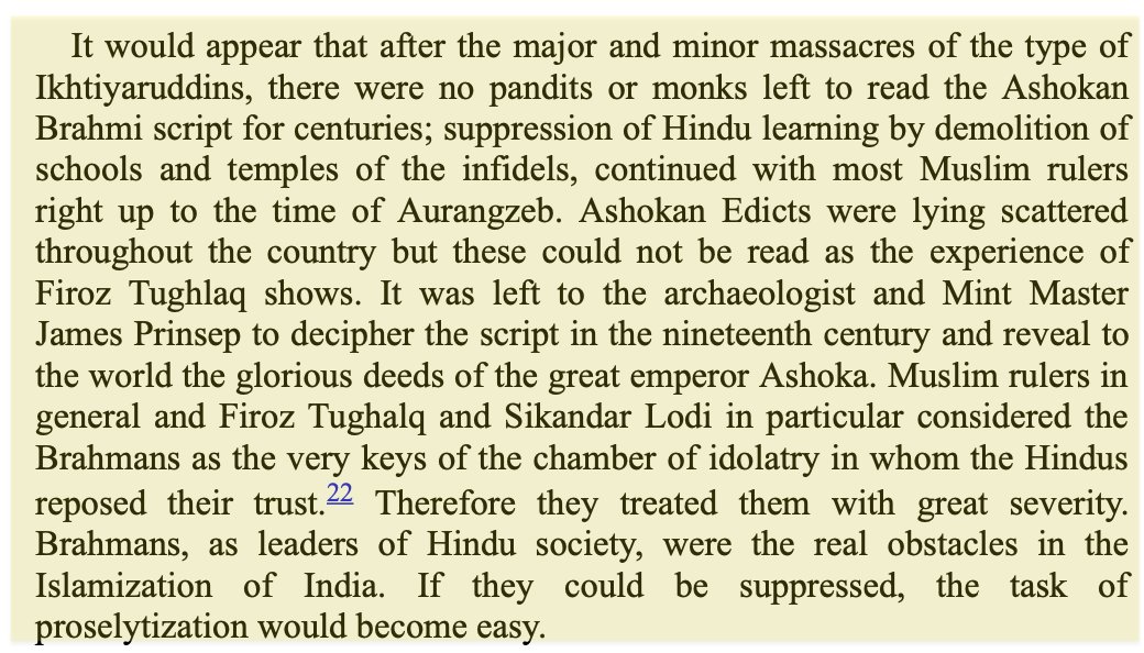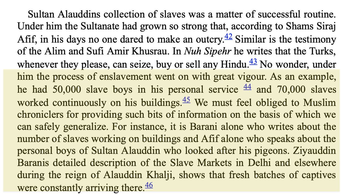 Arts & culture were devastated as all skilled Hindu artisans were enslaved. Chroniclers Afif & Barani describe Khalji’s 50,000 'boys' & 70,000 slaves working on buildings. Universities & libraries were decimated & Brahmins persecuted so widely that entire scripts were lost.