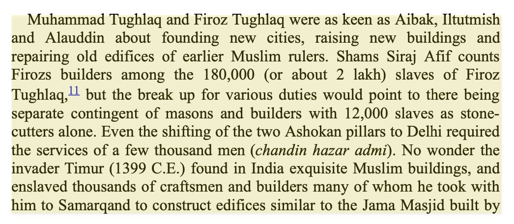In the same era, Tughlaq was notorious for“distributing” Hindu women like sweets on Id. 1000s of enslaved women were forced to sing & dance - then raped. 2 Lakh skilled Hindus (12,000 stone-cutters) built all his cities & Lakhs had to clean & scavenge the city's trash & sewage