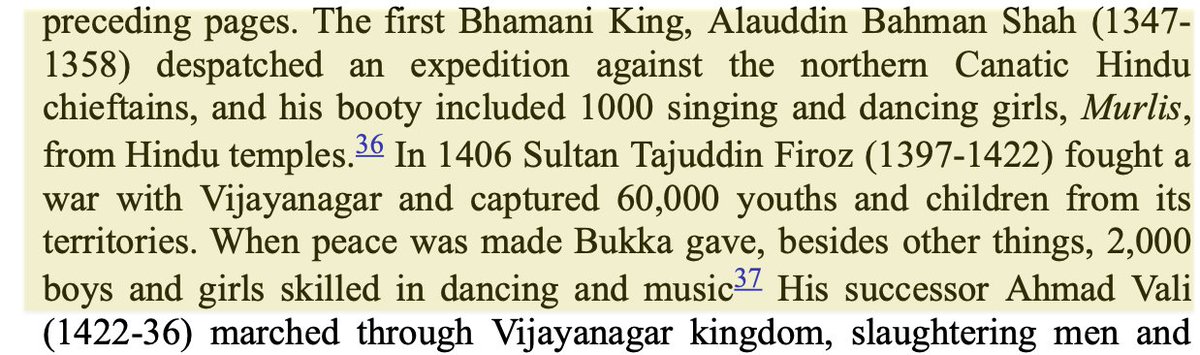 In 15th c. Bahmani Sultan Tajuddin Firoz fought Vijayanagar & enslaved 60,000 Hindus. Many of the slaves were singers & dancers & musicians of highest caliber. They were forced to convert & degrade their expertise in classical Hindu arts to become performers in Islamic courts.