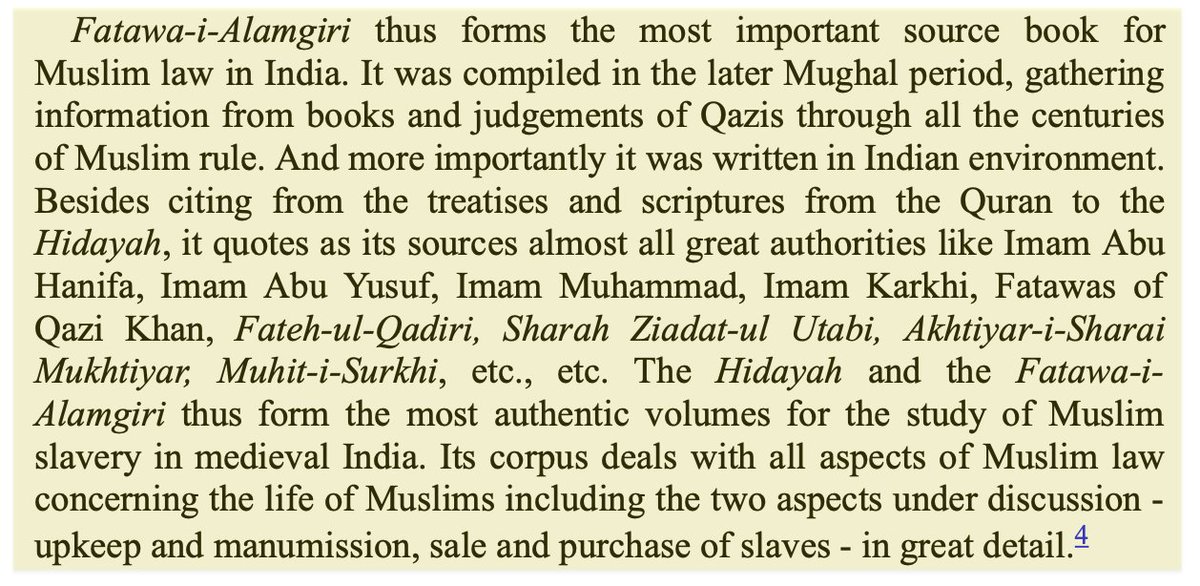 By the 18th c. slavery by Muslims had existed for so long in India that Islamic rules on slaves had become too complex. Aurangzeb invited 100s of Islamic scholars to create Fatwa-i-Alamgiri which quoted Islamic authorities on rules for Muslim life & slavery in great detail.