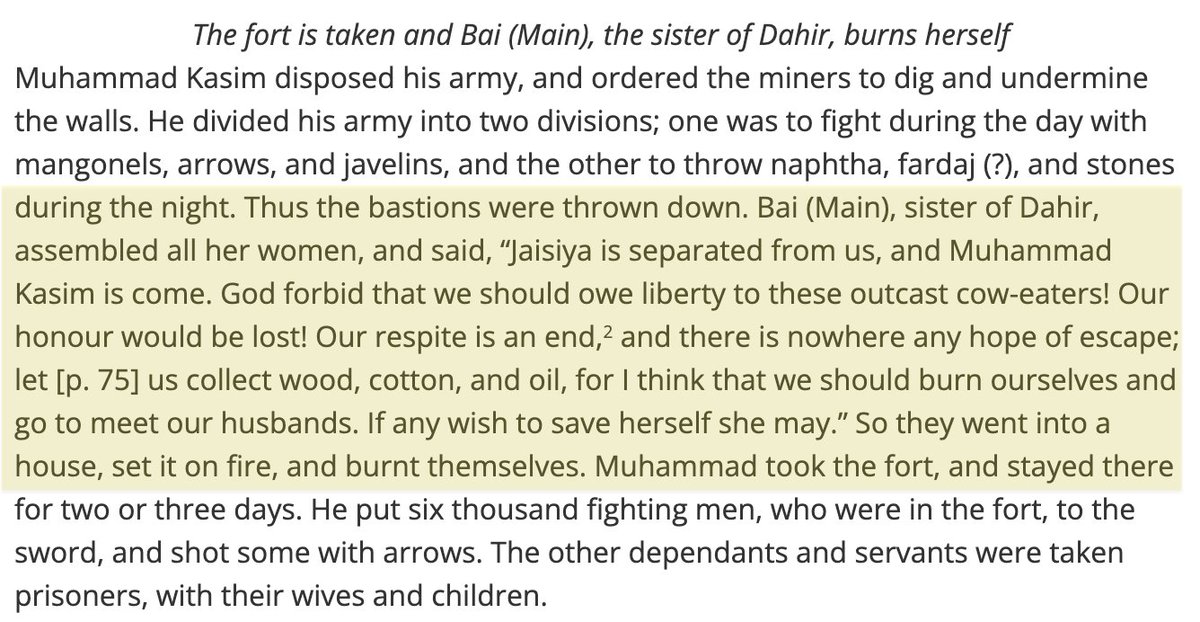 Yet from the very 1st invasion, Hindus resisted enslavement fiercely. In 712 A.D as Qasim savaged Sindh, Dahir’s sister Bai exhorted 1000s of women in the captive Rawar fort to commit Jauhar in the sacred fire to escape rape & torture at the hands of “chandals & cow-eaters’’.