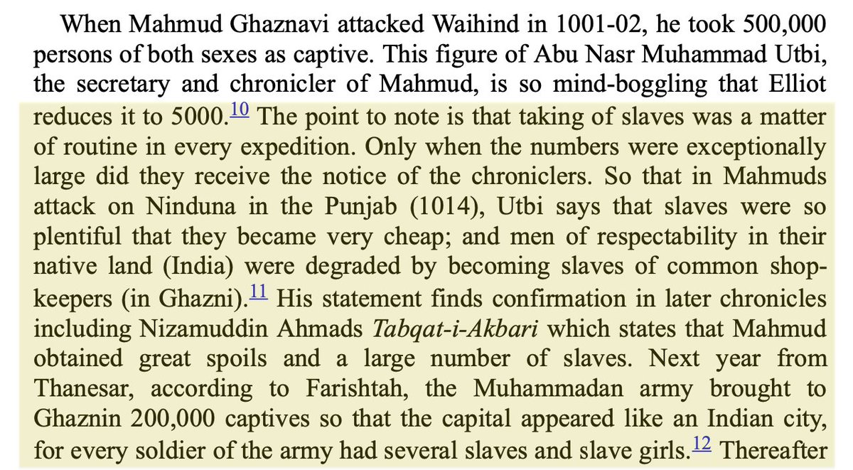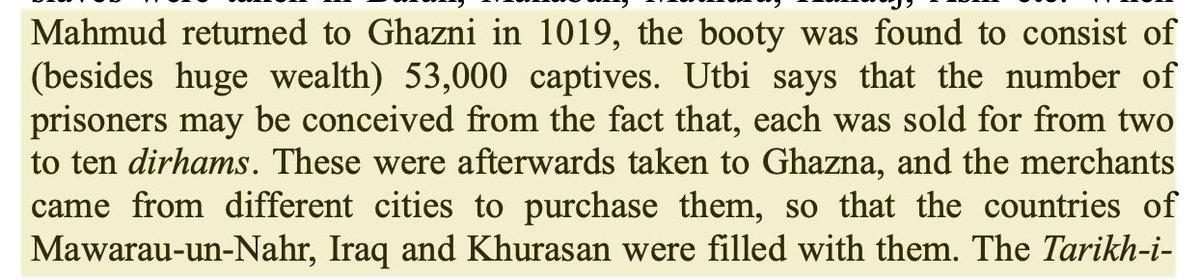 In 11th c. Mahmud of Ghazni was even more barbaric than Qasim & brutally enslaved Lakhs of Hindus. Utbi boasts that Mahmud enslaved half a million Indians in Waihind. Farishta gloats that the Muslims took 200,000 slaves back to Ghazni, & every J1hadi1 got numerous slaves.