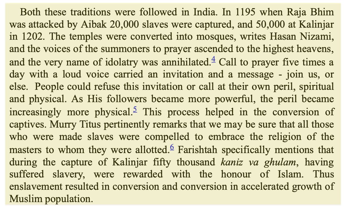 In the 12th c., Aibak enslaved 20,000 during his attack on Raja Bhim & 50,000 from Kalinjar. 100s of Temples were destroyed & made mosques. Ghori sent Aibak reinforcements as new Muslim converts from Central Asia poured in for loot & slaves, giving them a numerical advantage.
