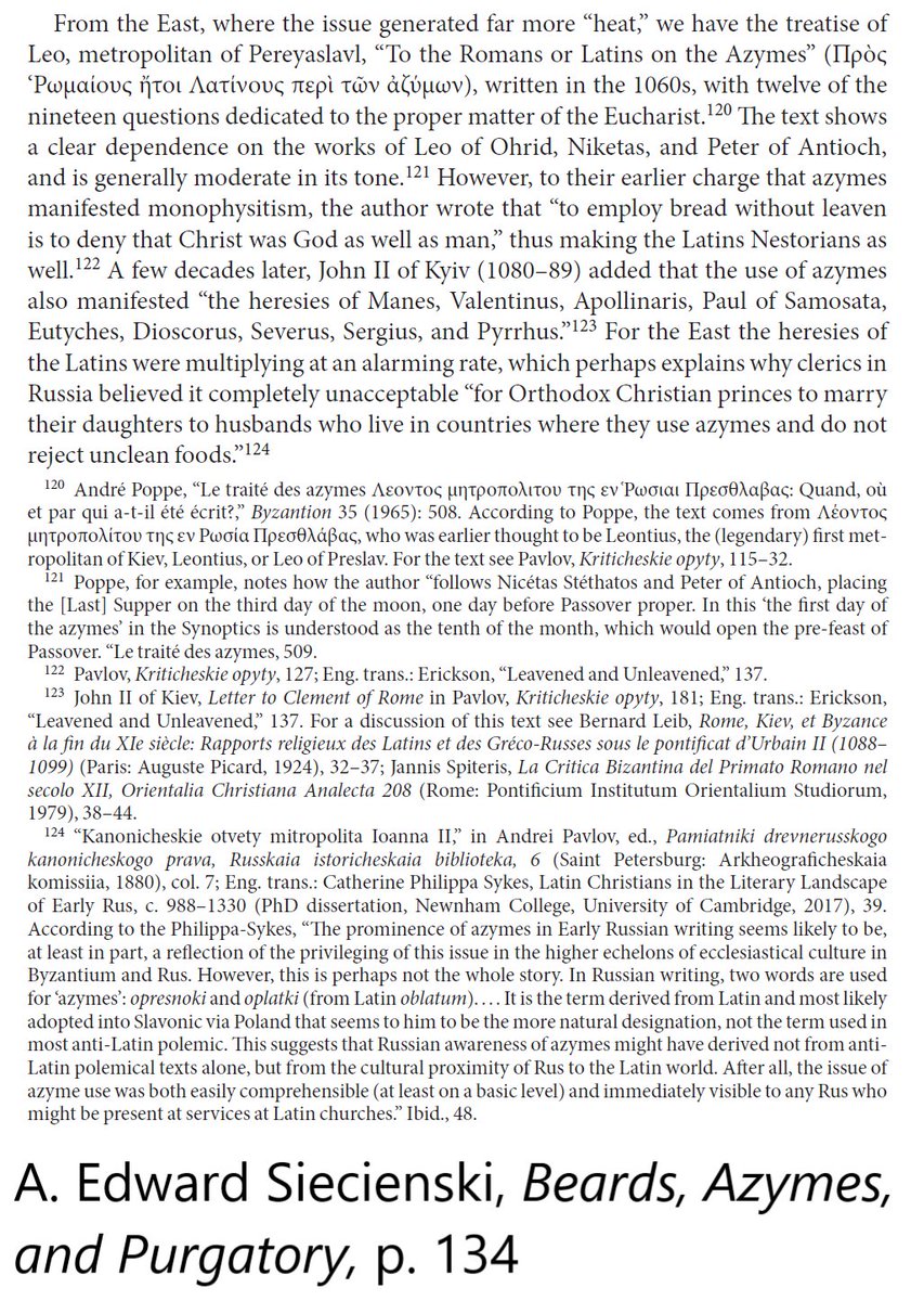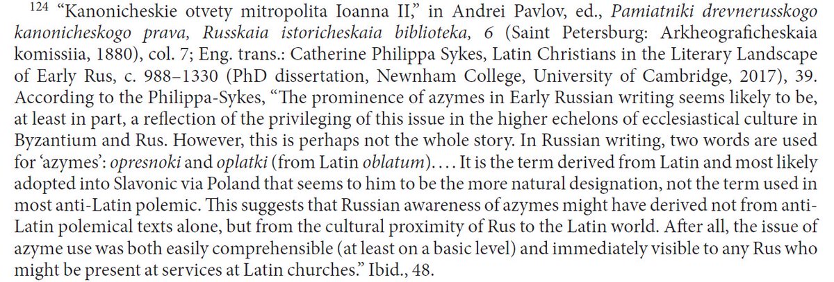 Leo, metropolitan of Pereyaslavl, wrote a treatise in 1060s criticizing Latin use of unleavened bread as Monophysite & Nestorian. Met John II of Kiev (☦️1089) wrote azymes in communion entail several heresies. Orthodox clergy forbade Rus princes marrying their daughters to Latins
