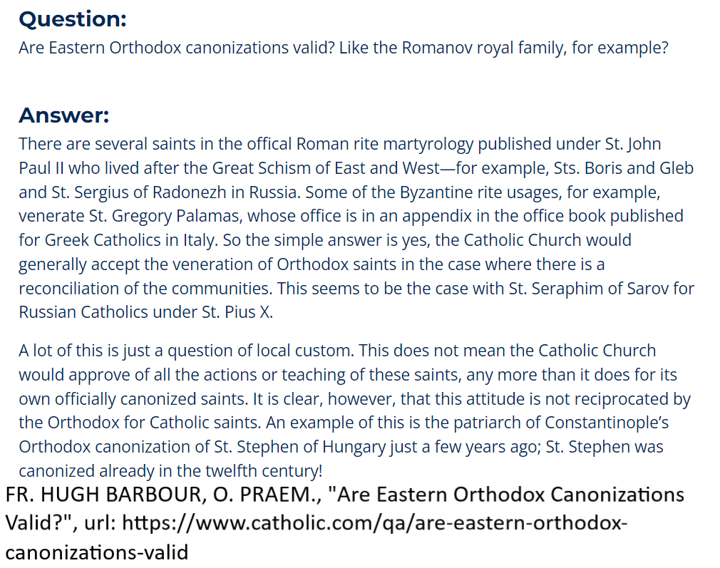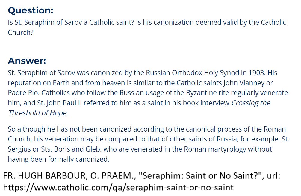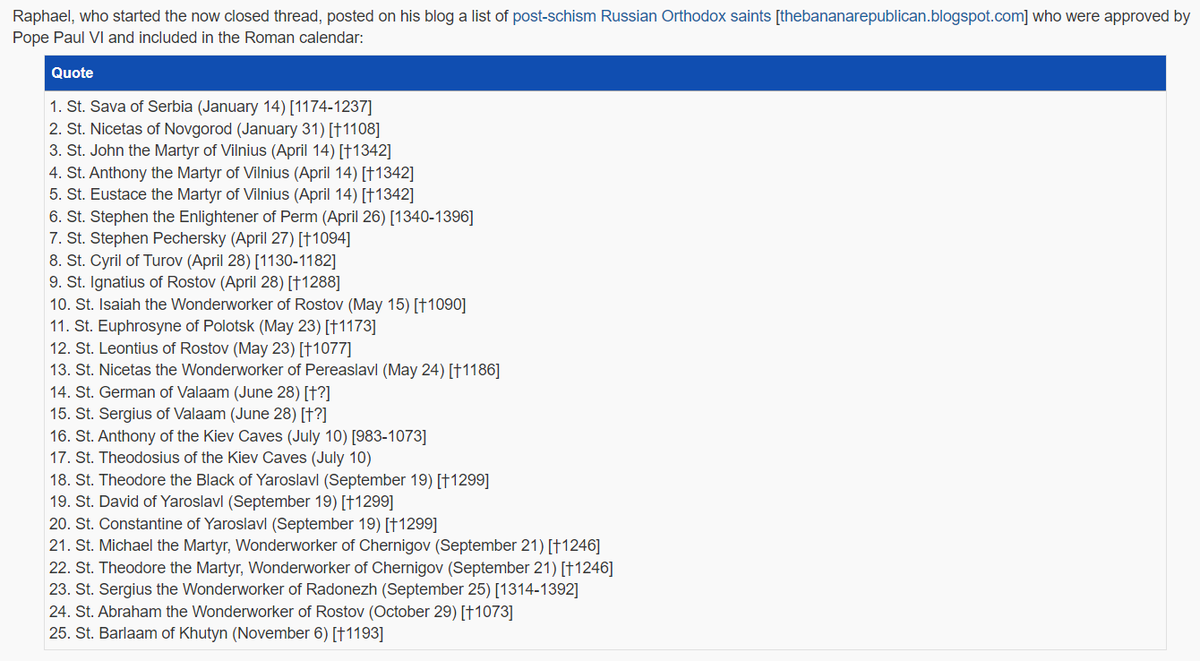 Despite more centuries of separation Pope John Paul II referred to St Seraphim of Sarov (☦️1833) as saint, but he lived in 19th century. Latin priest Hugh Barbour: veneration of post-schism Russian Orthodox saints & post-1054 canonizations are generally valid if "reconciliation."