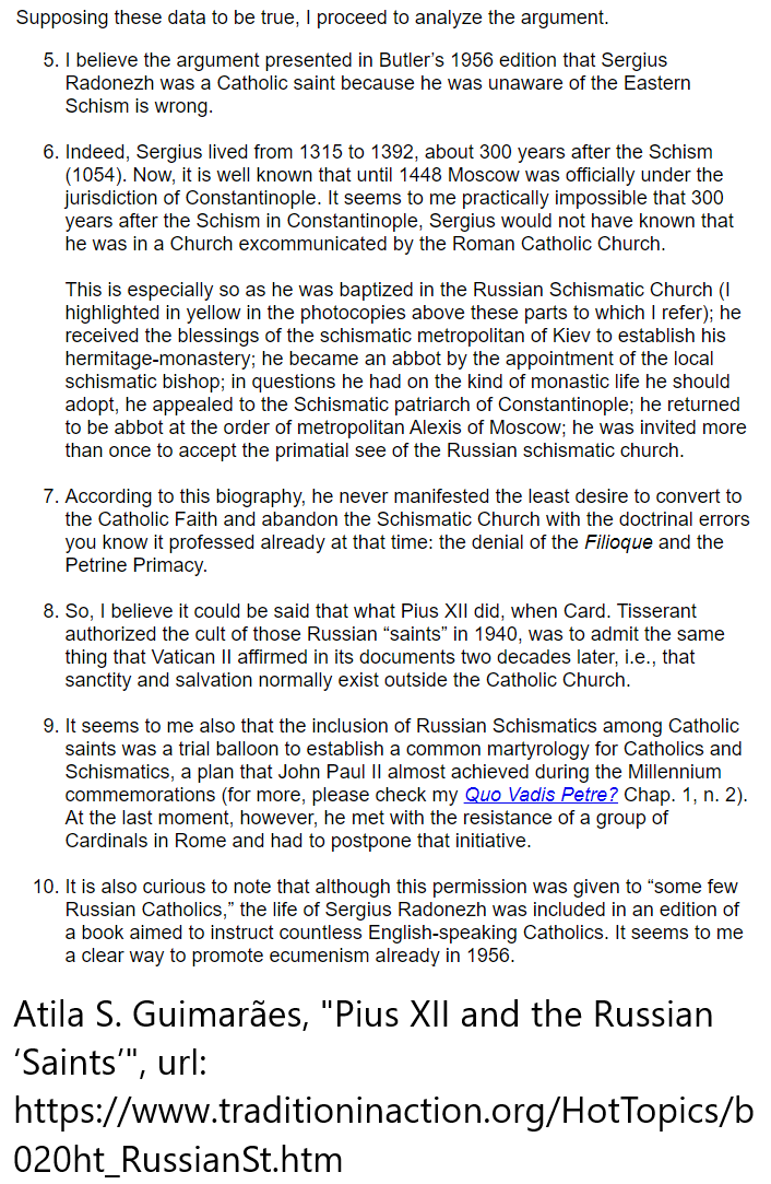 While sedevacantists have no authority in Catholicism Guimarães opines post-schism Russian saints like St Sergius shouldn’t be in Roman Martyrology bc they’re schismatics with no intention to convert. Contrast it with the modern RC view EO are no longer referred to as schismatics