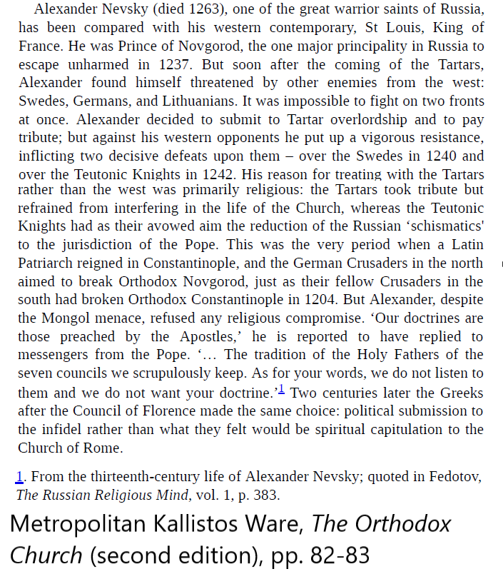 Claim: "Russian saints before Florence are Catholic unless proven otherwise." This demonstrates a great ignorance of the period. There are many examples besides St Theodosius showing Kievan Rus' ecclesiastical authorities shortly after 1054 recognize schism & heresy among Latins.