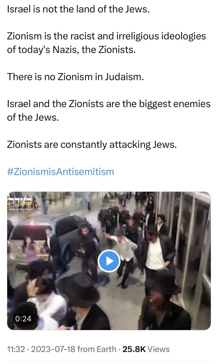 I first came across this account right after it posted, and started to pretend to be Jewish and posting videos representing the Haredi position on Judaism, Israel and Zionism. He went under the name “@RabbiAmramBlau”