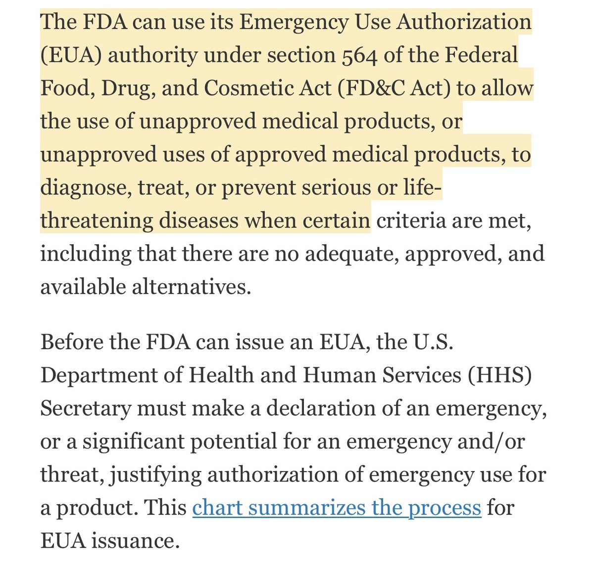 Is the FDA overstepping it’s authority to authorize the use of an unapproved potentially very dangerous drug for experimental use without an emergency being declared?