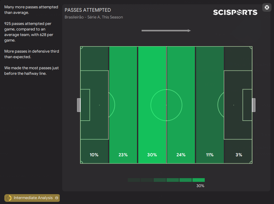 The momentum one I don’t really care for as it's for the last match and we already took a quick glance at the general performance one. So let’s take a look at the passes attempted and see how this translates to how the tactic works. #FM23