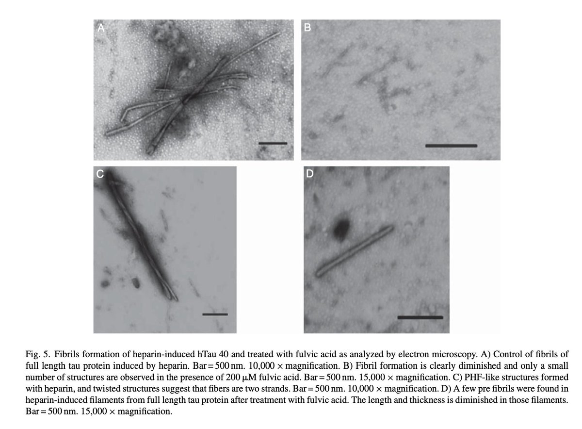 Plus intéressant encore, il a été démontré que l'acide fulvique inhibe l'agrégation et favorise le désassemblage des fibrilles de tau associées à la maladie d'Alzeimer.