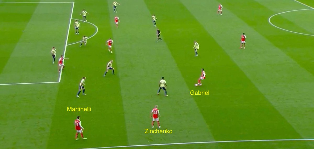 But the key difference (apart from the CF) is that last season Saka was accompanied by Odegaard while now Martinelli is accompanied by Havertz.